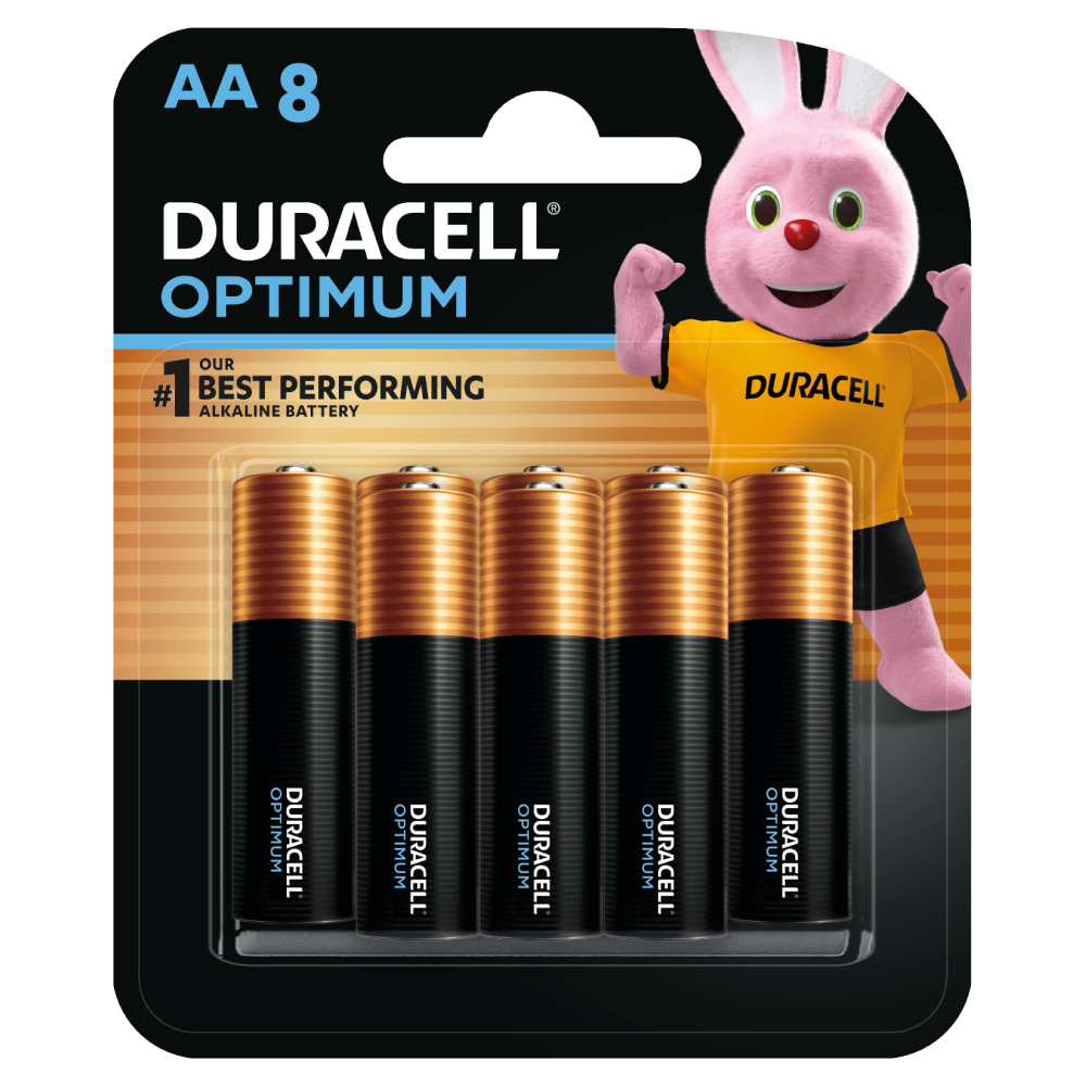 تتوفر بطاريات دوراسيل أوبتيموم في مقاسات AA وAAA.